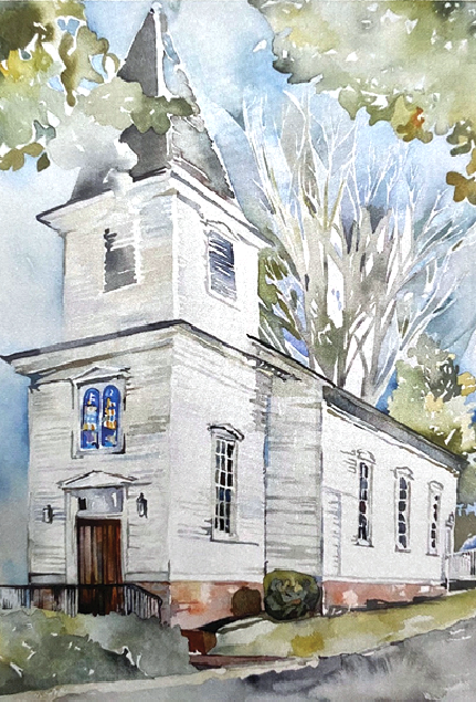 The first Annandale Methodist Episcopal Church was built in 1846 on land donated by William Garges. During the Civil War, the small frame building was taken over by the Union Army for use as a hospital. It was burned, along with the rest of the village, when the army withdrew from the area. Capt. Ambrose Cock, a trustee, opened his home for worship services until a new building was completed in 1870 on land he had donated. This is now known as the Little White Church. In 1907 a vestibule, belfry and pulpit extension were added. In 1908 the Ladies’ Aid raised money for a bell to hang in the steeple, which served as the only fire alarm in Annandale until 1923.